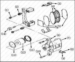 (5) Тормозные колодки (внутренняя и наружная).